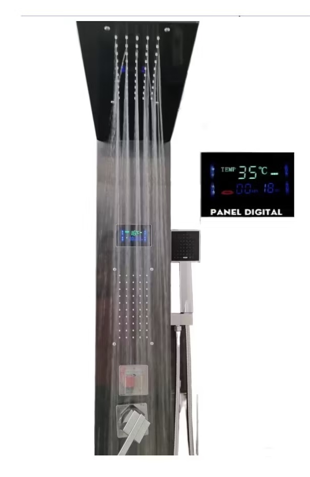 Aquatrend - Columna De Ducha Con Panel Digital De Temperatura Color Gris Oscuro | Lider Electrohogar