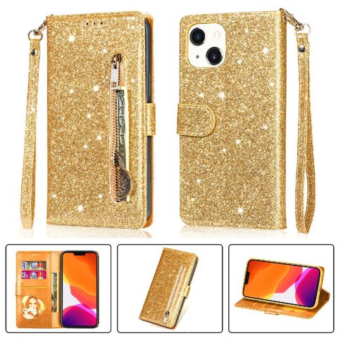 Funda Para Foxdock Elegante Funda Iphone 13 Glitter Con Cremallera-Ideal Para El Uso Diario