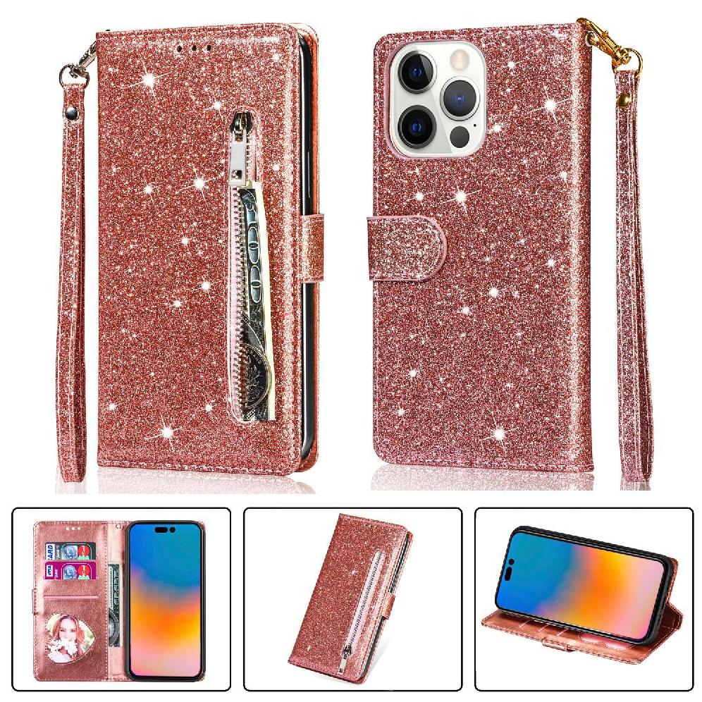 Foxdock - Funda Para Elegante Funda Iphone 14 Pro Max Glitter Con Cremallera-Ideal Para El Uso Diario
