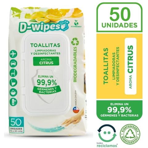 Toallas Desinfectantes D-Wipes Citrus Biodegradable 50 Un | Lider Electrohogar