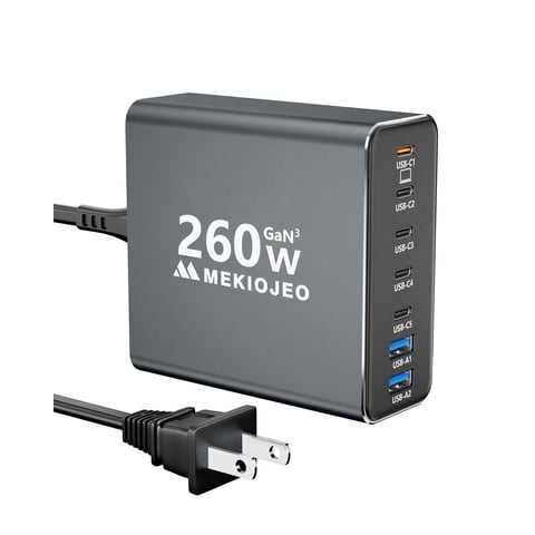 Cargador Mekiojeo De Aleación De Aluminio 260W Usb C Con 7 Puertos Para Macbook