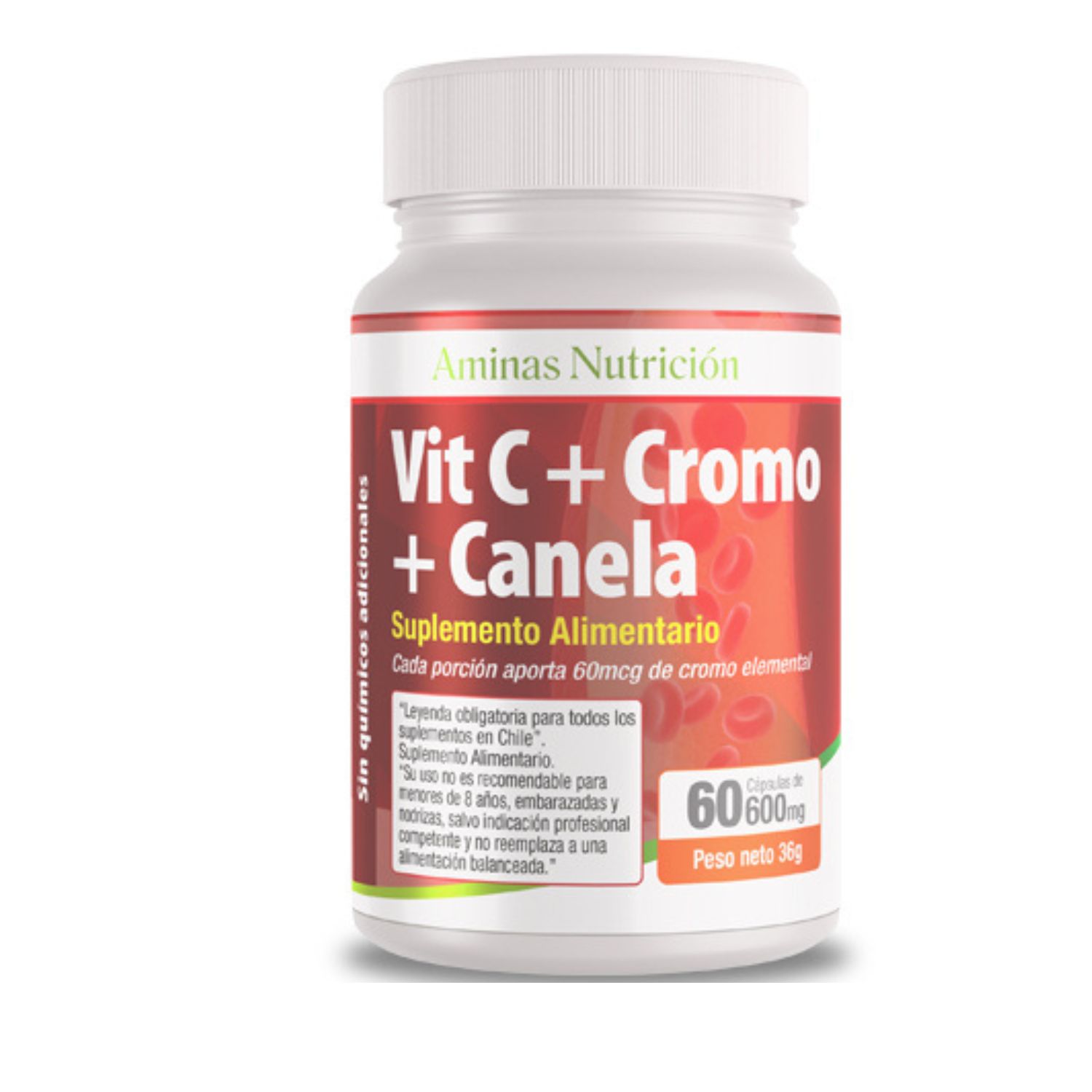 Aminas Nutrición - Vit C + Cromo + Canela 60 Cáps. 600 Mg- Ansiedad Por Carbohidratos - Metabolismo - Resistencia A La Insulina | Lider Electrohogar