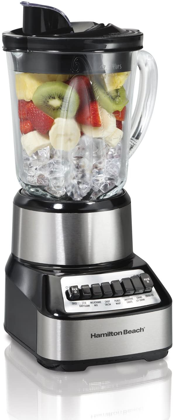 Hamilton beach wave crusher blender con frasco de vidrio de 40 oz y 14 funciones para puré, trituración de hielo, batidos y batidos, acero inoxidable (54221)