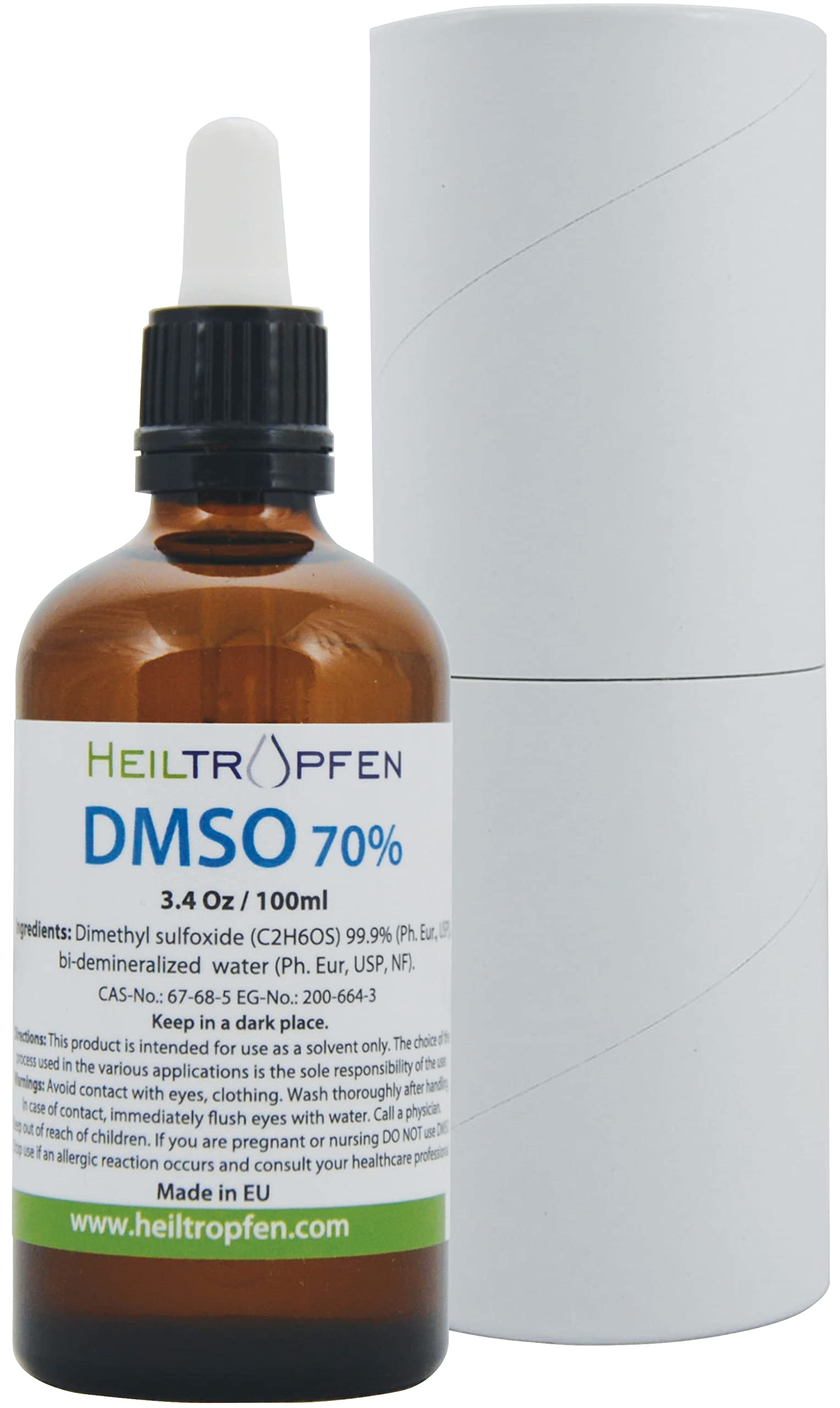 Este es un 70% de dmso hecho de 99,9% de dmso y agua destilada (bi-desmineralizada). el dmso puro al 99,9% tiene un estado líquido o sólido/cristalino de la materia, ya que tiene un punto de congelación relativamente alto a 65.3 °f (65,3 ° f), lo que significa que a temperatura ambiente o por debajo de ella es un sólido/cristal, por encima de él es líquido. /en caso de estado cristalino de la materia puede ponerlo en un recipiente ancho o olla con agua caliente (no hervida) y cerrarlo si es posible. el agua no debe ir por encima del cuello de la botella. después de 30-60 minutos, cambie el agua con una caliente nuevamente. luego mantenga la botella a temperatura ambiente por encima del punto de fusión. o colóquelo en el calentador durante la noche./ dmso se ha utilizado durante más de 100 años en los estados unidos. es una sustancia natural derivada de la pulpa de madera y es inofensiva cuando se usa con las precauciones adecuadas. dmso es un líquido orgánico, incoloro, natural, no sintetizado, extraído de la lignina. el uso previsto de dmso es solo como disolvente y la elección de usarlo en otras aplicaciones es responsabilidad exclusiva del usuario. - bajo olor, alta pureza. ingredientes de grado farmacéutico. 70% dmso líquido. el sulfóxido de dimetilo (dmso) es un subproducto del procesamiento de la madera - botella de vidrio con pipeta. - fabricado en la ue. - embalado en tubo de cartón resistente y duro: protección ideal para viajes y viajes.