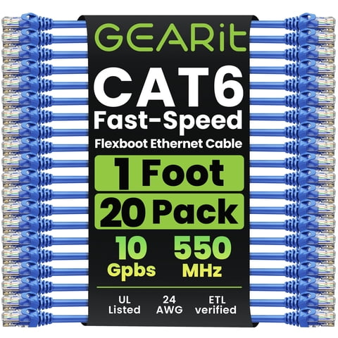 Cable Ethernet Gearit Cat6 De 1 Pie, 20 Unidades, Serie Blue Premium | Lider Electrohogar