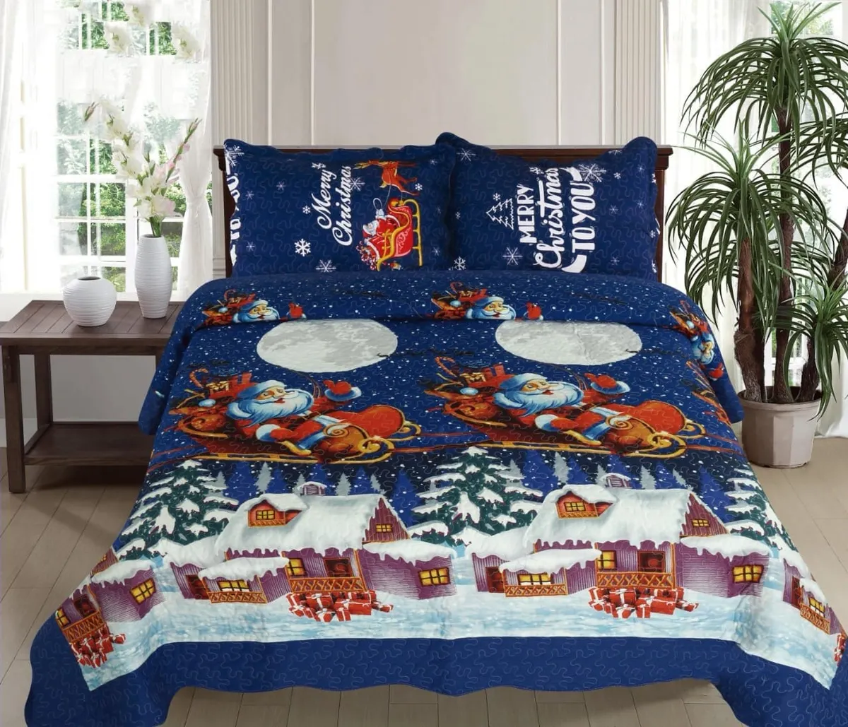 Casadeliacl - Cubrecama Navideño 2 Plaza Quilt De Verano Tf Azul Oscuro Trineo