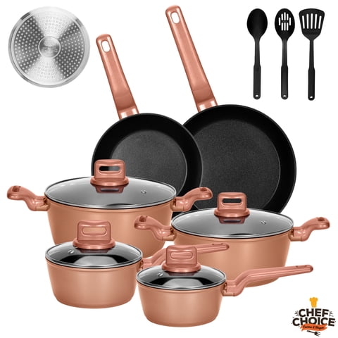 Chefchoice - Bateria De Cocina Ceramica Antiadherente Aluminio 13 Piezas Oro Rosa | Lider Electrohogar