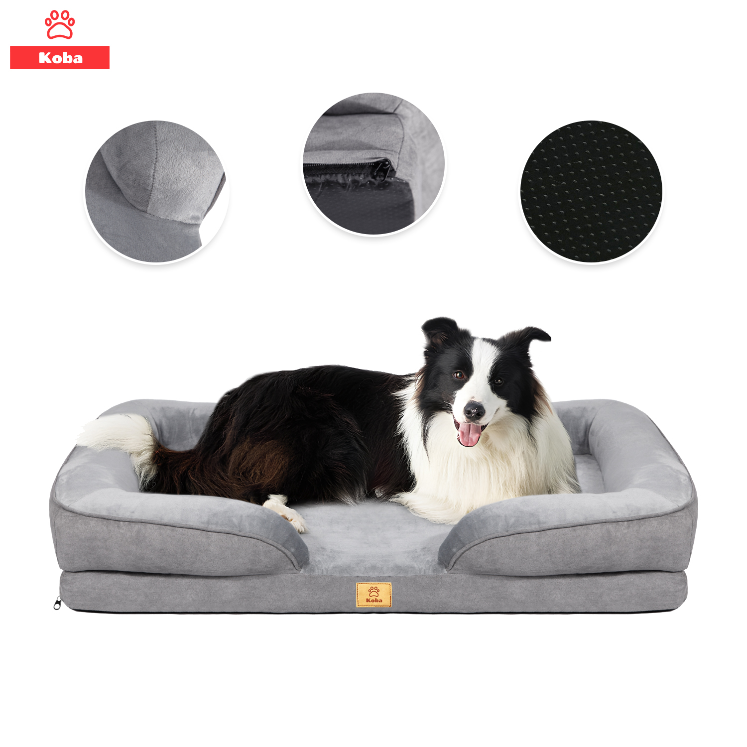 Koba - Cama Antiestres Perro Colchon Ortopedica 90X63Cm Grande Gris | Lider Electrohogar