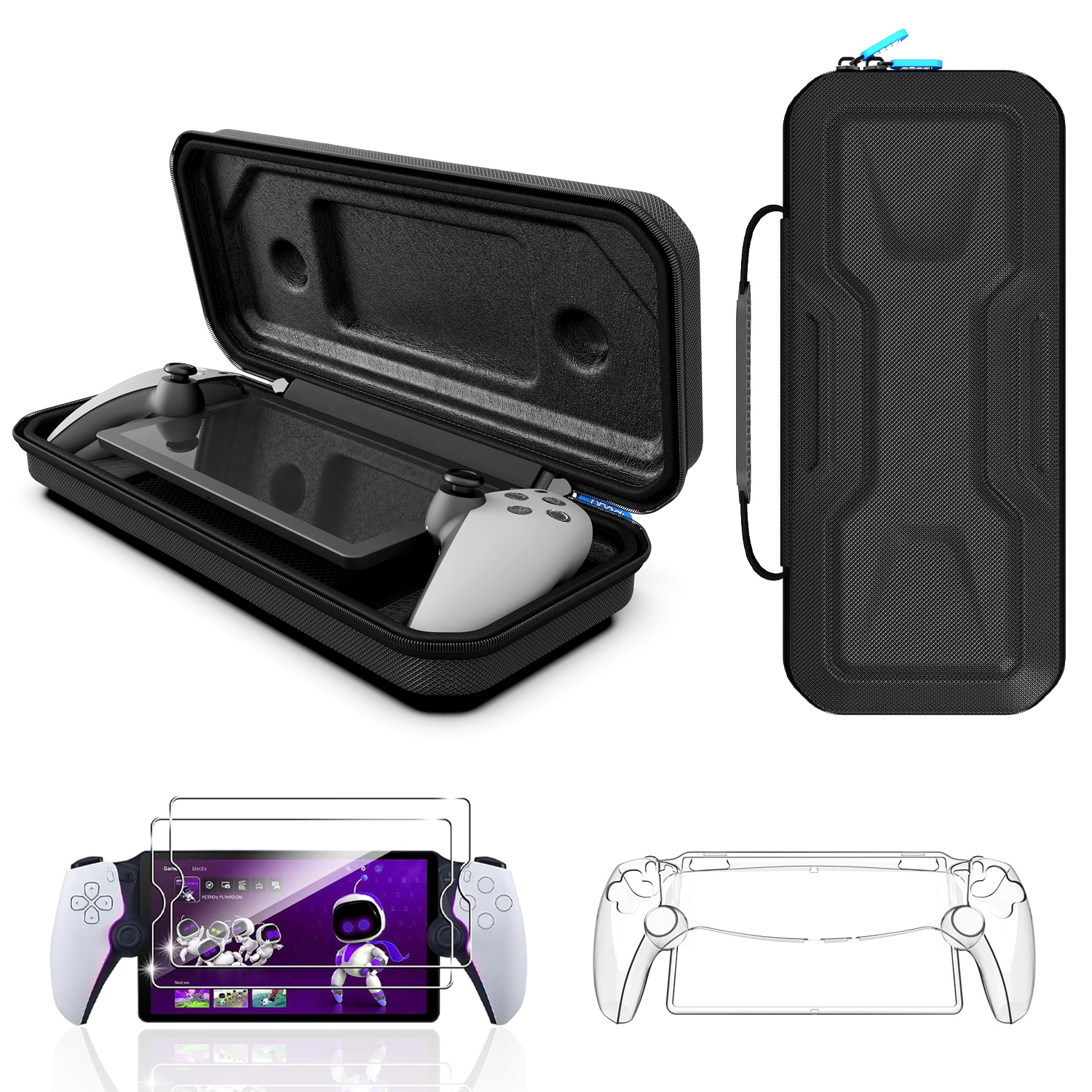 Protección completa para tu consola ps5 portal con un estuche rígido y funda transparente de pc que resiste impactos y protege contra polvo y rayones. incluye protector de pantalla de vidrio templado con dureza 9h que mantiene la sensibilidad táctil y ofrece alta definición visual. diseño ultra delgado y ligero que conserva el estilo original de la consola, con estuche texturizado fácil de limpiar y correa antideslizante para transporte cómodo.