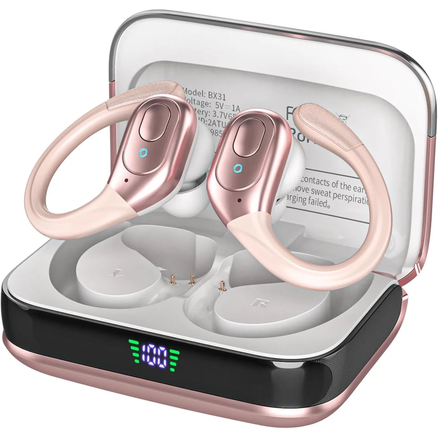 Aaronmei Auriculares Inalámbricos Bluetooth 5.3 Deportivos Rosa Dorado