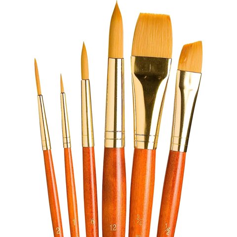 Set 6 Pinceles Princeton Mango Pelo Sintético Taklon Dorado | Lider Electrohogar