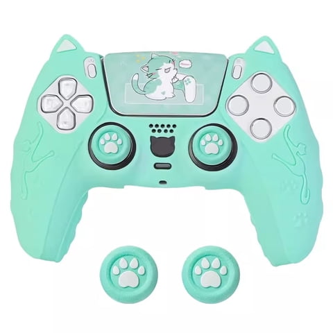 Funda Protectora Aaronmei Para Control Ps5 Verde Con Orejas De Gato Y Capuchón Para Joystick | Lider Electrohogar