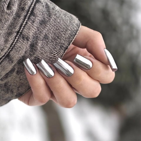 Press On Nails Sxvme, Blanco, Plateado Y Cromado, Cuadrado Corto | Lider Electrohogar