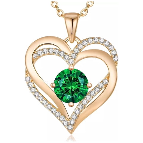 Heshpaws - Collar Love Pendant Doble Corazón Con Zirconia Y Piedra De Nacimiento Plata | Lider Electrohogar