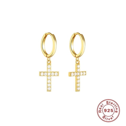 Aretes Heshpaws S925 Sterling Silver Cross Diamantados Plata | Lider Electrohogar