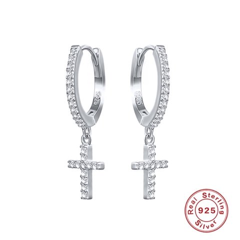 Aretes Heshpaws S925 Sterling Silver Cross Diamantados Plata