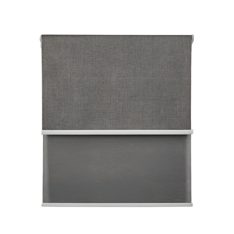 Cortina Roller Blackout Doble 2 Paño 80X200 Con Visillo Gris Oscuro Lino Sin Cenefa Guiza