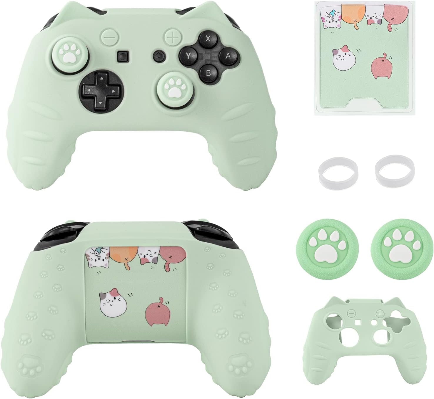 Funda de silicona con diseño de orejas de gato que protege tu switch pro controller contra rayones y caídas. su superficie texturizada mejora el agarre para un control firme y seguro. fácil de instalar y remover, con protectores de anillo para joysticks que previenen daños por uso prolongado.