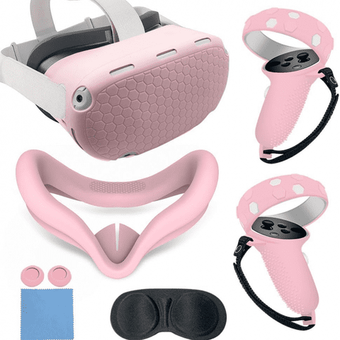 Genérico - Juego De Accesorios De Vr Para Quest 2: Carcasa De Silicona, Empuñaduras Para El Mando, Protector Facial, Tapones Para Los Botones, Juego De Paños Para Las Gafas Y Protector De Lentes-Rosa | Lider Electrohogar