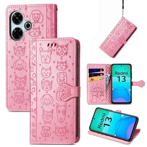 Funda Cartera Foxdock Para Xiaomi Redmi 13 4G , Flip Pu Con Relieve De Gatos Y Perros, Tarjetero Y Soporte | Lider Electrohogar