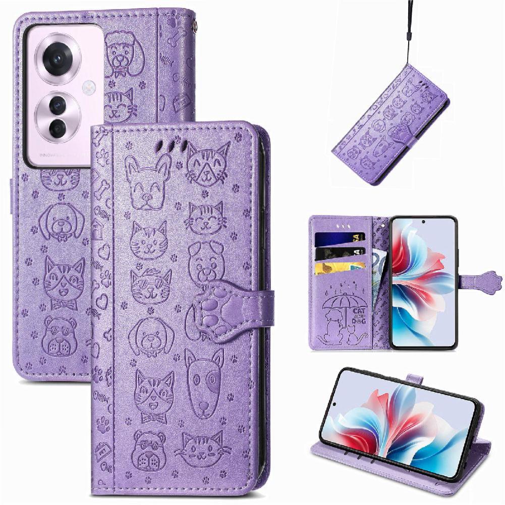 Funda Cartera Foxdock Para Oppo Reno 11F 5G , Flip Pu Con Relieve De Gatos Y Perros, Tarjetero Y Soporte | Lider Electrohogar