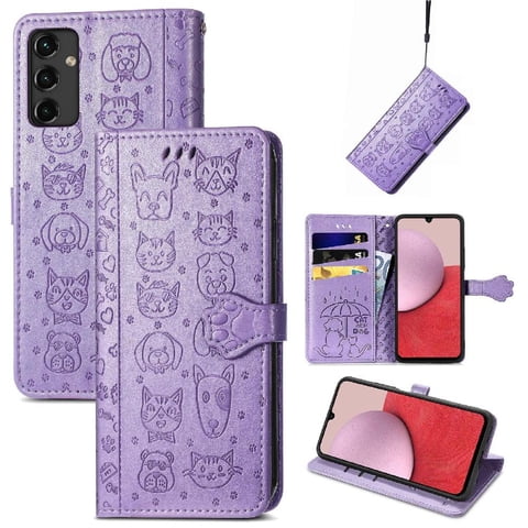 Funda Cartera Foxdock Para Samsung Galaxy A14 5G , Flip Pu Con Relieve De Gatos Y Perros, Tarjetero Y Soporte | Lider Electrohogar