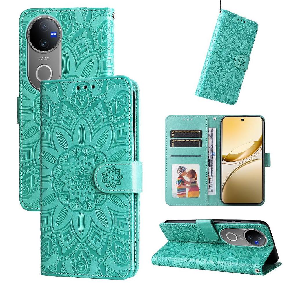 Funda Tipo Cartera Foxdock Para Vivo V50 , Diseño Girasol En Relieve, Cuero Pu, Cierre Magnético, Soporte Y Tarjetero | Lider Electrohogar