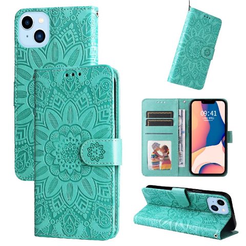 Funda Tipo Cartera Foxdock Para Iphone 14 Plus , Diseño Girasol En Relieve, Cuero Pu, Cierre Magnético, Soporte Y Tarjetero