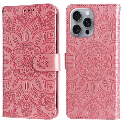 Funda Tipo Cartera Foxdock Para Iphone 16 Pro Max , Diseño Girasol En Relieve, Cuero Pu, Cierre Magnético, Soporte Y Tarjetero | Lider Electrohogar