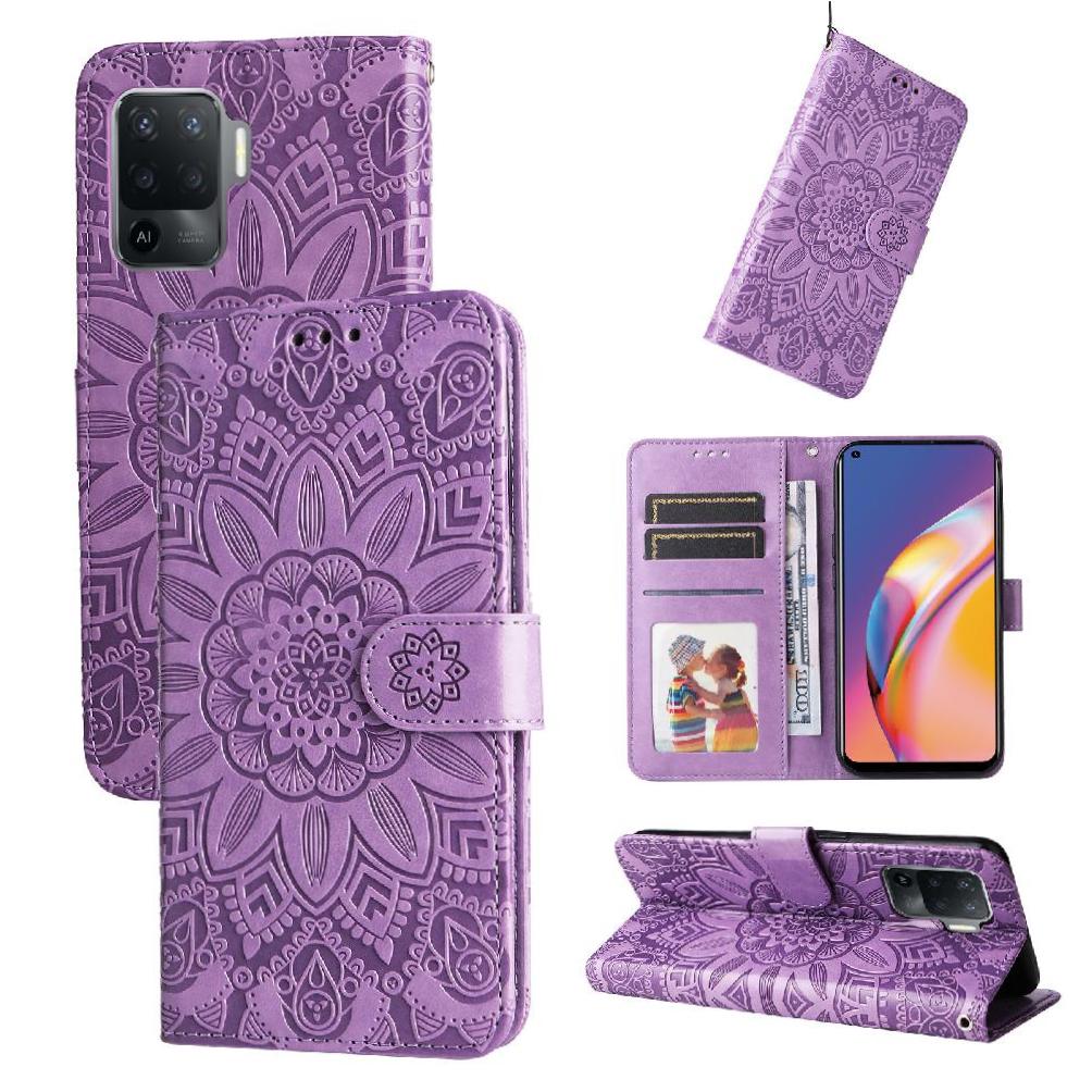 Funda Tipo Cartera Foxdock Para Oppo Reno 5F , Diseño Girasol En Relieve, Cuero Pu, Cierre Magnético, Soporte Y Tarjetero | Lider Electrohogar