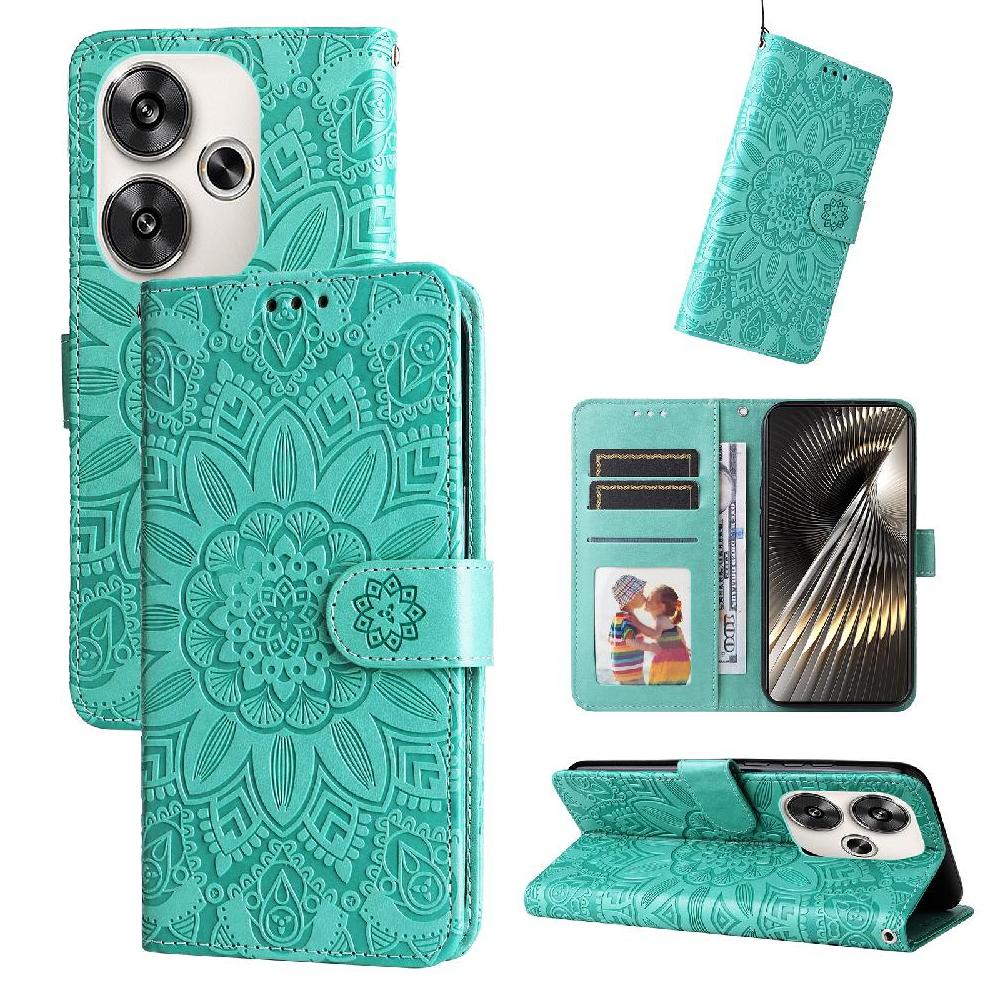 Funda Tipo Cartera Foxdock Para Xiaomi Poco F6 , Diseño Girasol En Relieve, Cuero Pu, Cierre Magnético, Soporte Y Tarjetero | Lider Electrohogar