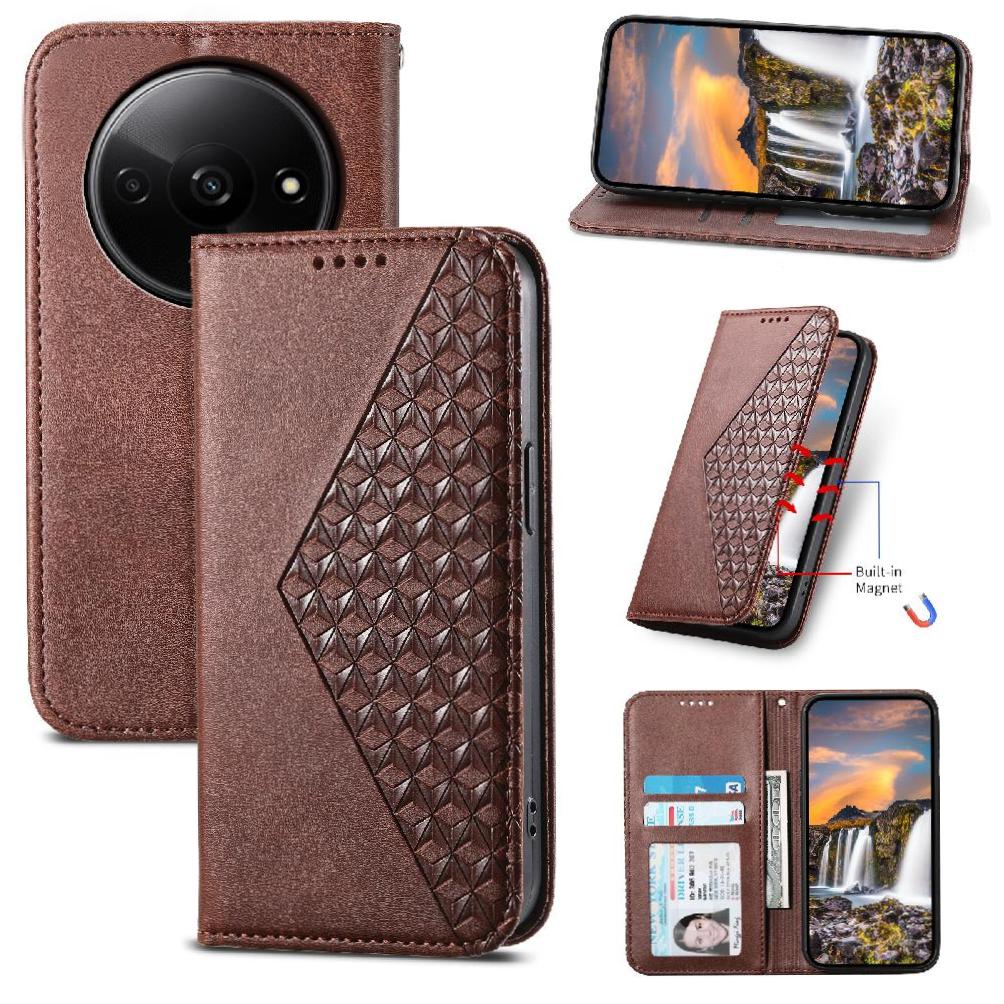 Esta funda flip con diseño de rombos para xiaomi redmi a3 está diseñada tanto para hombres como para mujeres, ideal para el uso diario, el trabajo o ocasiones de negocios. fabricada en cuero sintético duradero, ofrece una excelente protección contra rayones, desgaste y decoloración. su correa de mano integrada permite un agarre seguro al usar el teléfono en movimiento, mientras que el diseño tipo snap-on facilita una instalación y retirada rápidas. además, su función de soporte plegable es perfecta para ver videos, realizar videollamadas o leer cómodamente.
