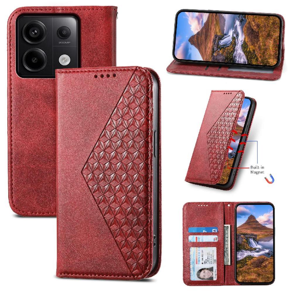 Funda Flip Foxdock Para Xiaomi Redmi Note 13 Pro 4G , Estilo Billetera Con Diseño Rombo, Correa De Mano Y Soporte, Uso Diario