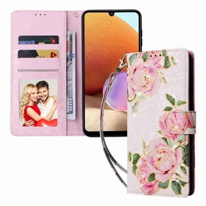Foxdock Funda Tipo Cartera Floral Para Samsung Galaxy A32 4G ,Funda Con Tapa De Cuero Pu, Protección Antigolpes Con Ranuras Para Tarjetas Y Soporte | Lider Electrohogar