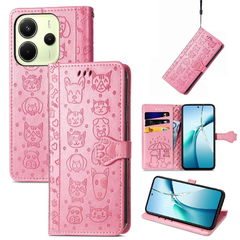 Funda Cartera Foxdock Para Xiaomi Redmi Note 14 4G , Flip Pu Con Relieve De Gatos Y Perros, Tarjetero Y Soporte | Lider Electrohogar