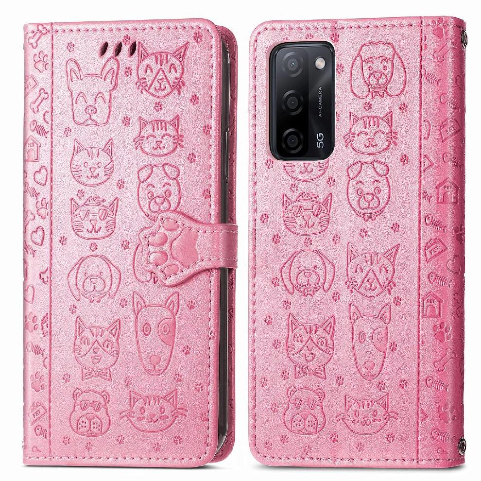 Funda Cartera Foxdock Para Oppo A55 5G , Flip Pu Con Relieve De Gatos Y Perros, Tarjetero Y Soporte