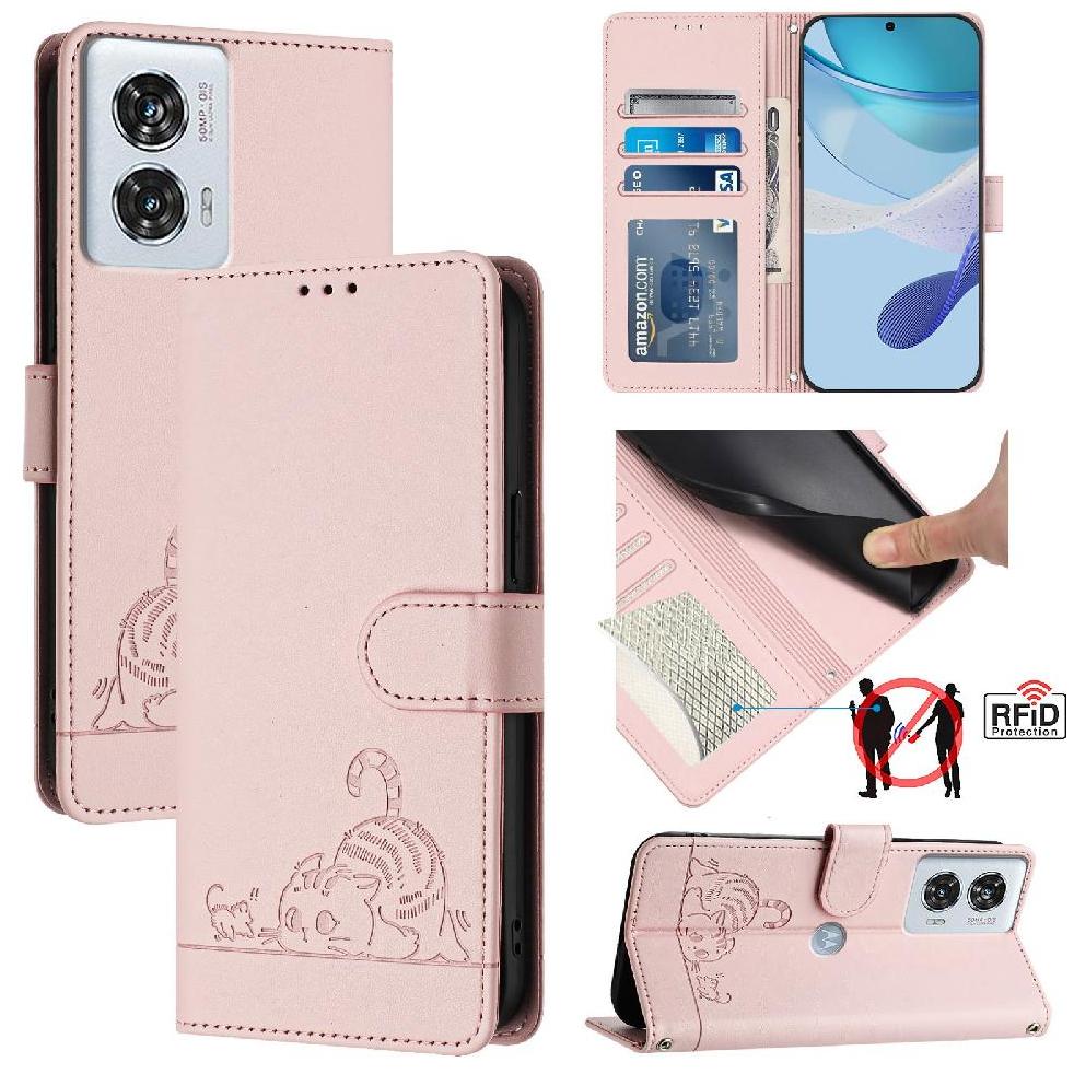 Funda Tipo Cartera Foxdock Para Motorola Edge 50 Fusion Con Soporte, Ranuras, Rfid, Diseño De Gato | Lider Electrohogar
