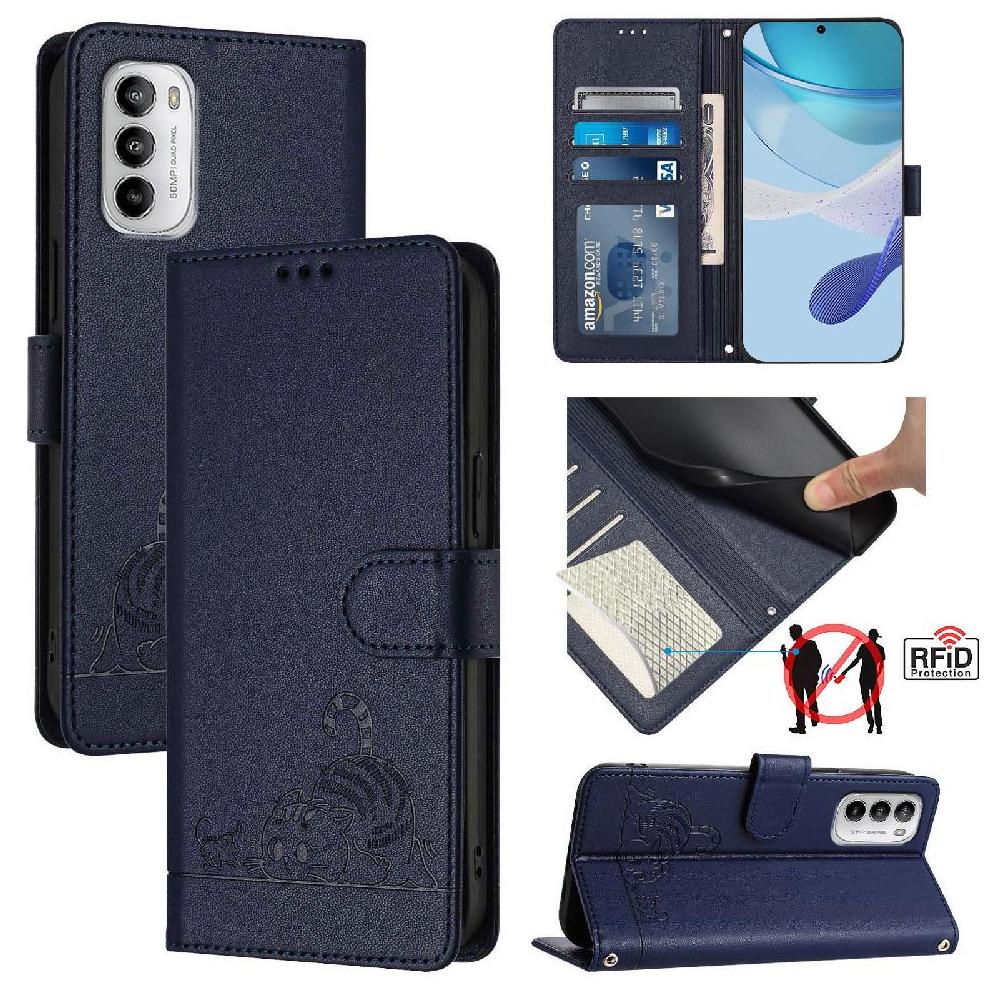 La funda tipo cartera foxdock para motorola moto g 5g 2022 combina estilo, funcionalidad y protección en un accesorio elegante. con un divertido diseño de gato en relieve, incluye 3 ranuras para tarjetas, un bolsillo para billetes y tecnología de bloqueo rfid para proteger tu información personal. con correa de muñeca desmontable y soporte plegable integrado, ofrece un uso versátil tanto en casa como fuera. fabricada con cuero pu duradero y materiales absorbentes de impactos, esta funda es ideal para la protección y comodidad diaria.