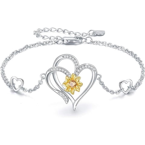Genérico - Pulsera Plata 925 Girasol Corazón Brazalete Plateado
