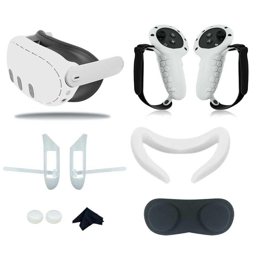Set De 7 Piezas Accesorios Aaronmei Cubierta Protectora Silicona Meta Quest 3 Blanco
