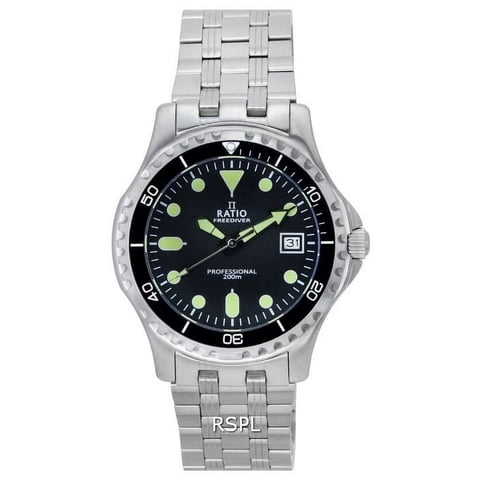 Reloj Ratio Freediver Zafiro Acero Inoxidable Esfera Negra Automático Rtf041 200M Reloj Para Hombre