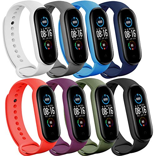 (4/5/8 pack) correa xiaomi mi 5 y mi 6/ amazfit band 5 bandas de repuesto para mi band 5 y mi 6 bandas smartwatch y amazfit band 5, correas de silicona suave y flexible amigables para la piel para hombre y mujer
