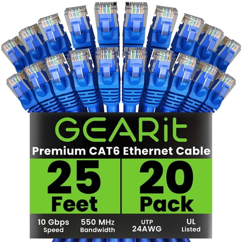 Cable Ethernet Gearit Cat 6 De 25 Pies (7,6 M), Paquete De 20, Azul