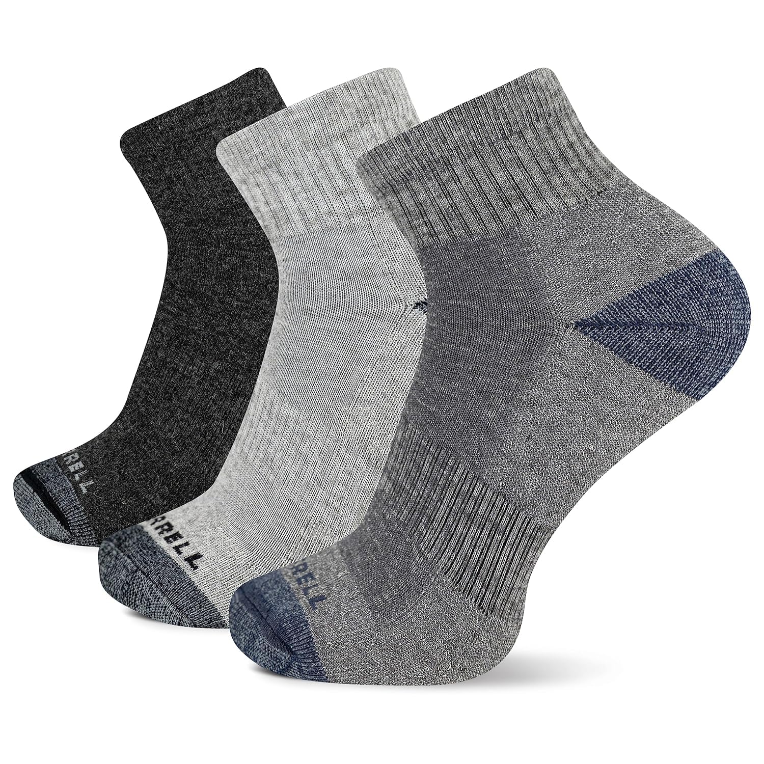 Merrell calcetines de senderismo de lana para hombre y mujer, paquete de 3 pares, acolchados, tobillo - carbón jaspeado - marca #1 de calzado para exteriores - soporte de arco: los calcetines cortos de corte bajo merrell tienen soporte de banda de arco para darte la máxima comodidad y proteger tus pies de la fatiga durante todo el día - talón y puntera reforzados: los calcetines merrell y senderismo tienen talón y puntera reforzados que garantizan una mejor y más larga durabilidad del calcetín, por lo que durarán y servirán para ti año tras año - saca más provecho de tu caminata: los calcetines merrell están especialmente diseñados para asegurarse de que el excursionista más serio sea capaz de llegar a cada cumbre