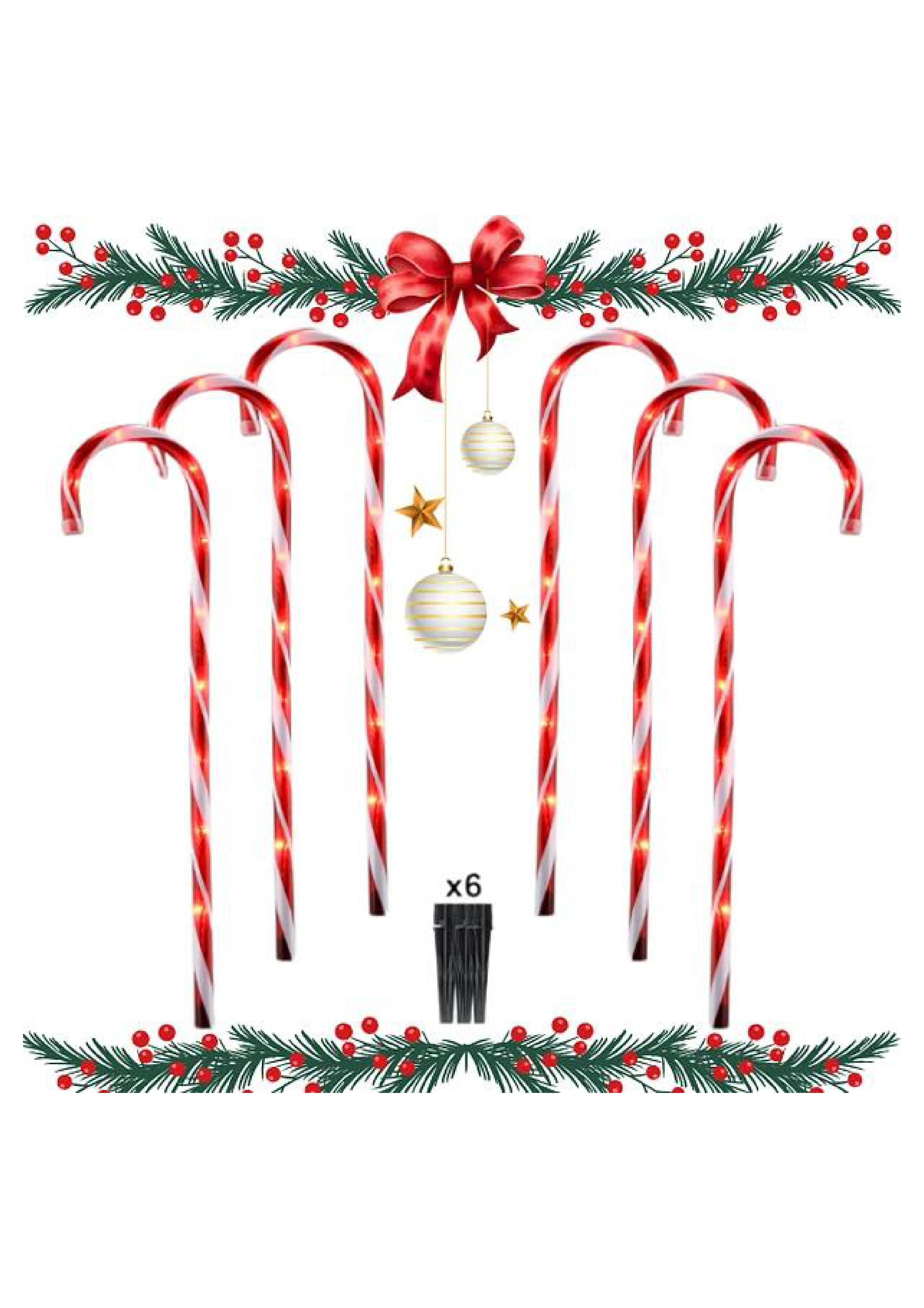 Luminosidad: los bastones de caramelo navideños iluminados para señalar el camino vienen 6 bastones de luces grandes de 28 pulgadas.