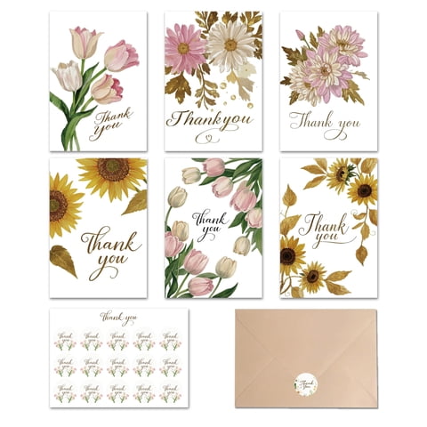 Tarjetas De Agradecimiento Xishiuyis, Paquete De 24 Con Sobres, 6 Diseños Florales | Lider Electrohogar