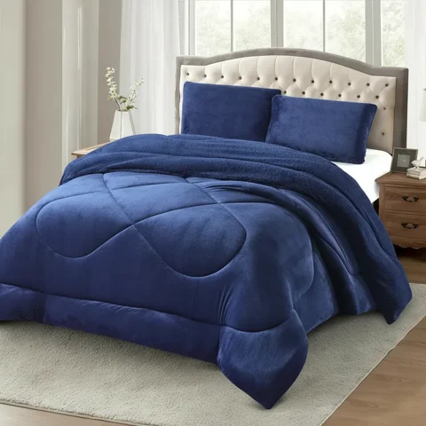 Casadeliacl - Juego De Sábanas Polar 2 Plazas Azul Oscuro Liso