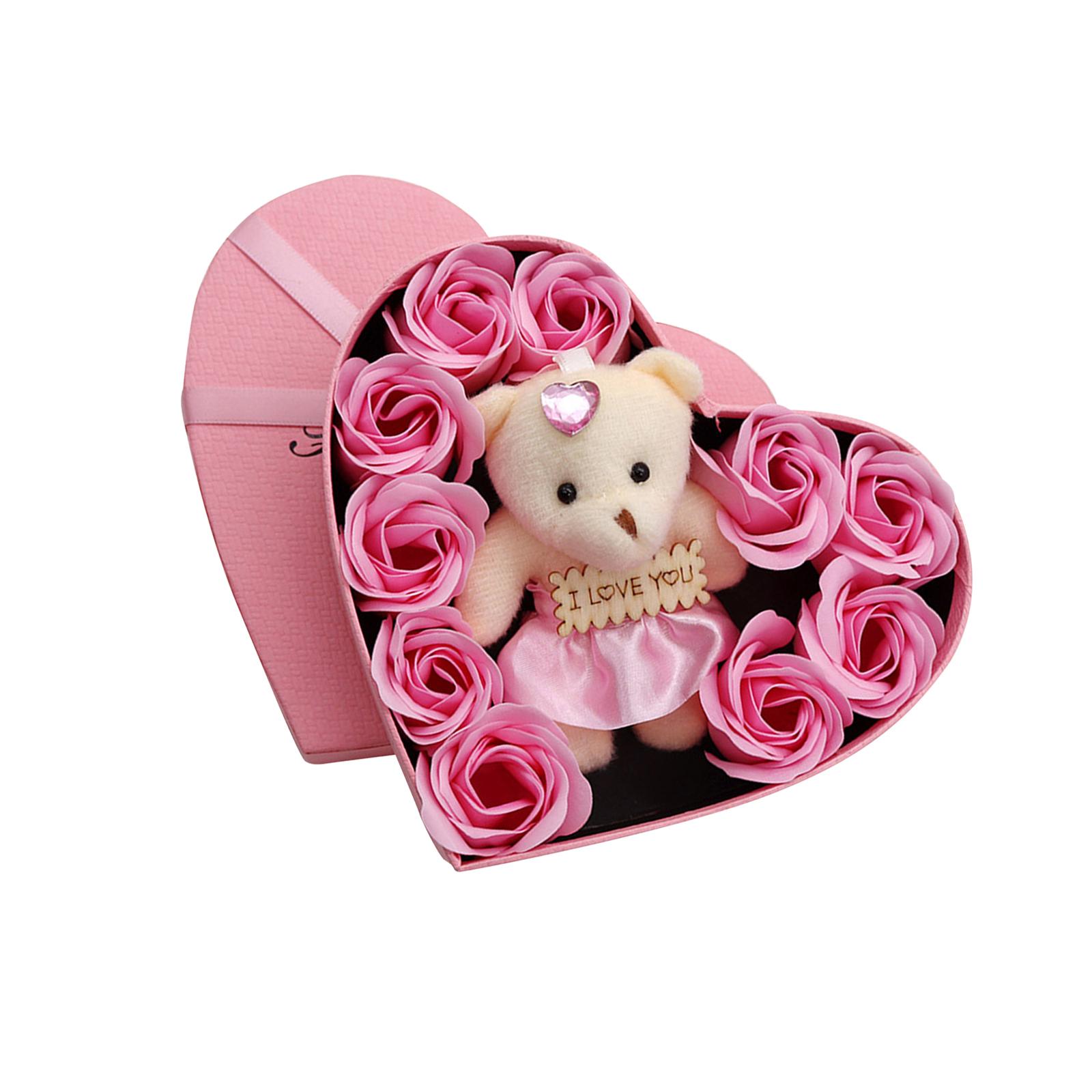 Flores artificiales: la caja de regalo de rosas se combina con 10 rosas artificiales, con un lindo muñeco de oso en una caja con forma de corazón. esta es una forma muy romántica y afectuosa de expresar tu amor.