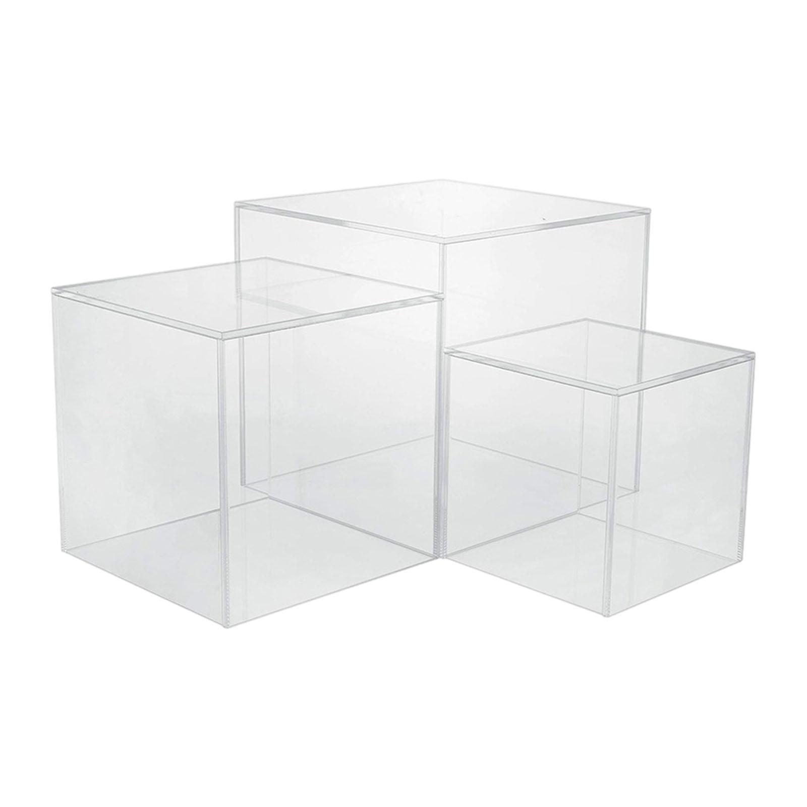 información sobre el tamaño: juego de 3 cubos acrílicos, tamaño grande 15,2 cm x 15,2 cm/6 pulgadas x 6 pulgadas, tamaño mediano 12,7 cm x 12,7 cm/5 pulgadas x 5 pulgadas, tamaño pequeño 10,1 cm x 10,1 cm/4 pulgadas x 4 pulgadas, con grosor de 3 mm.