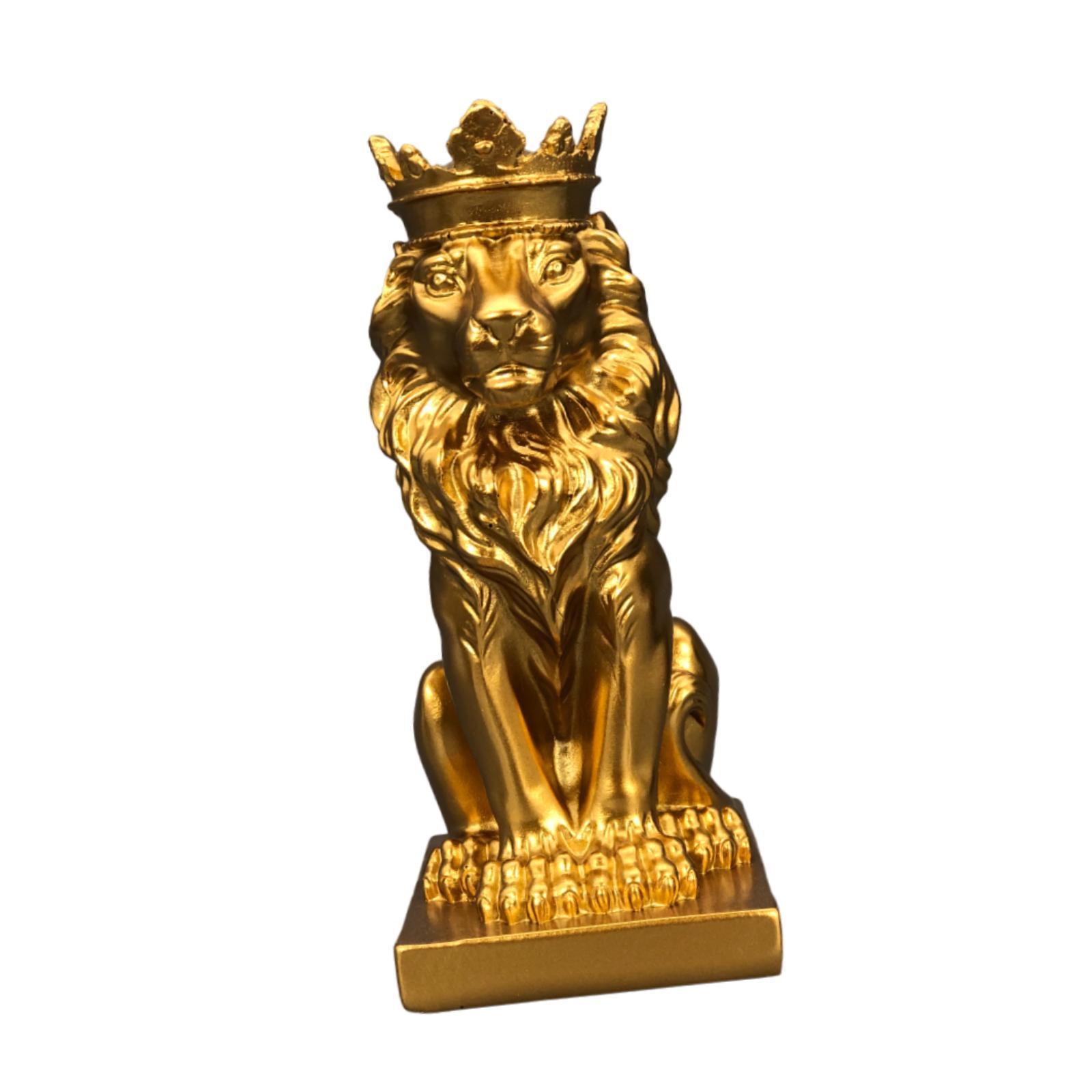 Bothyi - Figura Decorativa De León Con Corona, De 5,7 Pulgadas De Alto, Para Hoteles, Versátil, Dorada